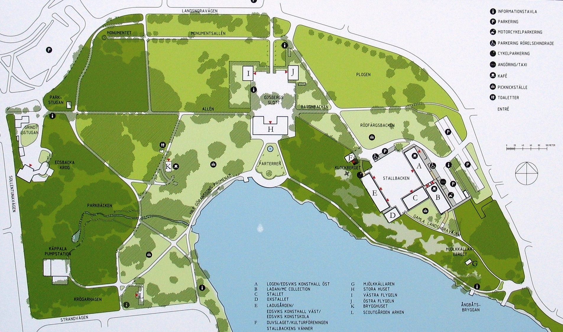 Brf Edsbacka Port har ett mycket attraktivt läge. Tvärs över Sollentunavägen ligger Edbergs slott med sin vackra slottspark vid norra änden av Edsviken. Förutom sköna promenader i parken och längs Edsvikens stränder finns även andra möjligheter till närbelägen rekreation i form av t ex Edsviks konsthall, Sollentuna Sim-och Sporthall, Sollentunavallen och två restauranger. Situationsplan Edsbergs slottpark